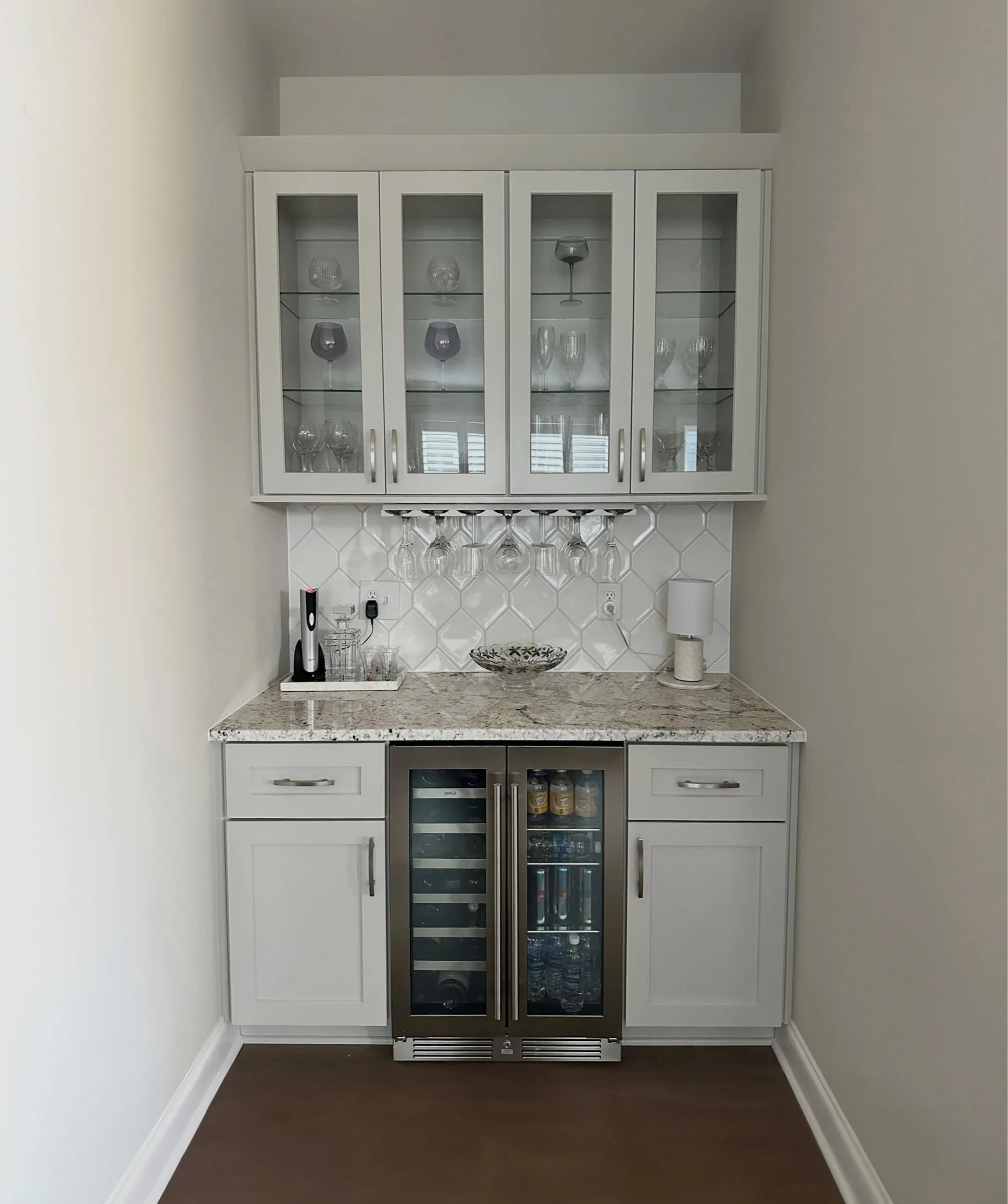 Create the ultimate entertaining space with a custom-designed home bar from Woodmaster Custom Cabinets. Whether you envision a sophisticated butler pantry, a compact dry bar, or a fully functional wet bar, we'll craft a space that perfectly reflects your style and functionality.